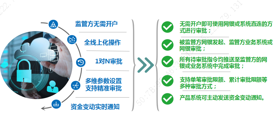 针对痛点2:通过引入“资金e监管”——交易资金协议监管方案,银行可充分解决企业在交易资金监管场景所遇到的问题,帮助客户真实掌握专项资金使用范围及用途是否合规,及时获取交易资金出入账流水及账户余额信息,线上实现高效异地管控。根据协议约定,监管方可运用查询监管、定向支付或多方审批模式,对相应资金进行专项监控,以实现资金的安全支付。